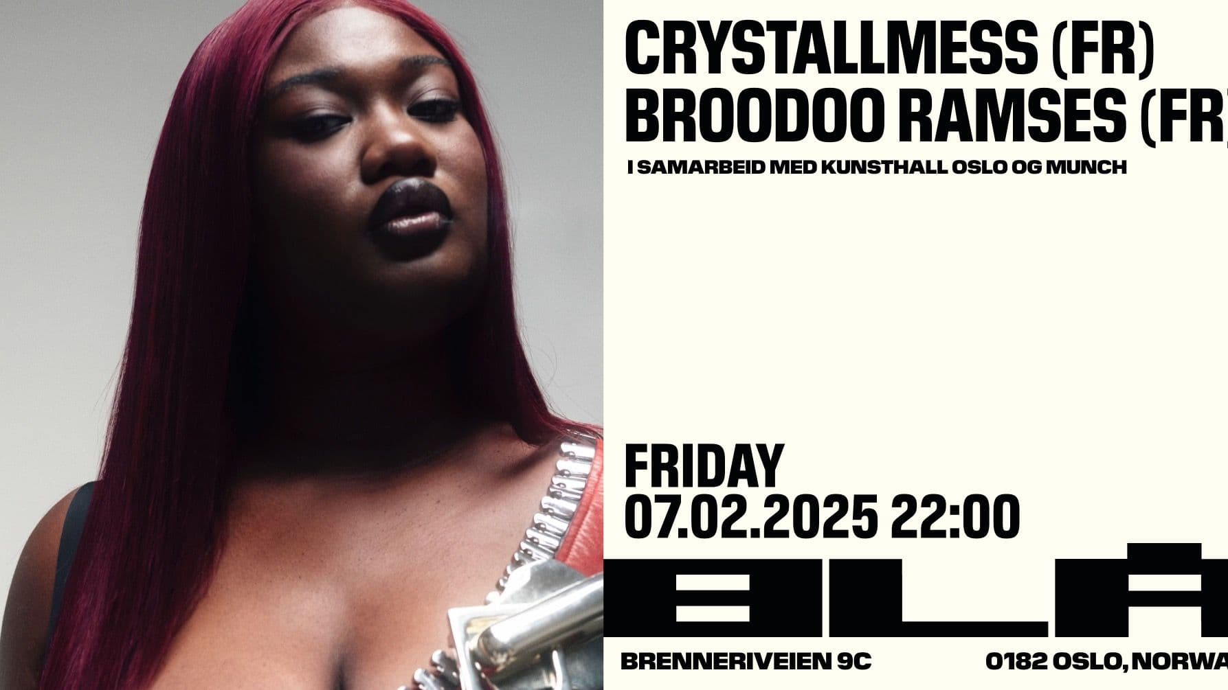 Crystallmess. Crystallmess er en fransk produsent og kunster som er kjent for sin energiske tilnærming til klubbmusikk. I tillegg til å være kuratør for Boiler Room, journalist for Vice, resident på NTS og foreleser på Harvard, har hun også gjort seg bemerket som samtidskunstner, med opptredener på Lafayette Anticipation, Centre Pompidou og utstilling på Tramway i Glasgow. Hennes sound er kompromisløss, og hun er regelmessig å finne på de beste klubbene og festivalene på kloden. Vi nevner Berghain, Dekmantel, Primavera og mange fler.