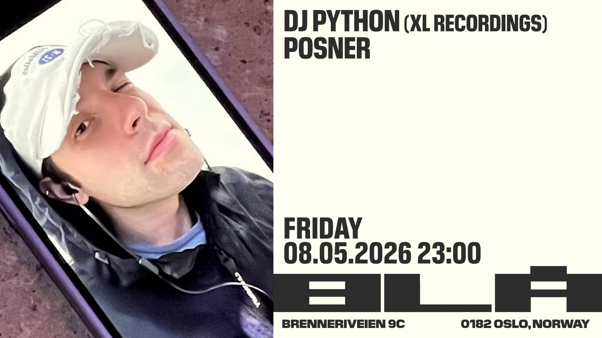 DJ Python (XL Recordings) & Posner Fredag 8. mai | 23:00 | Id: 20 | cc: 180,- leftfield / house / breakbeat