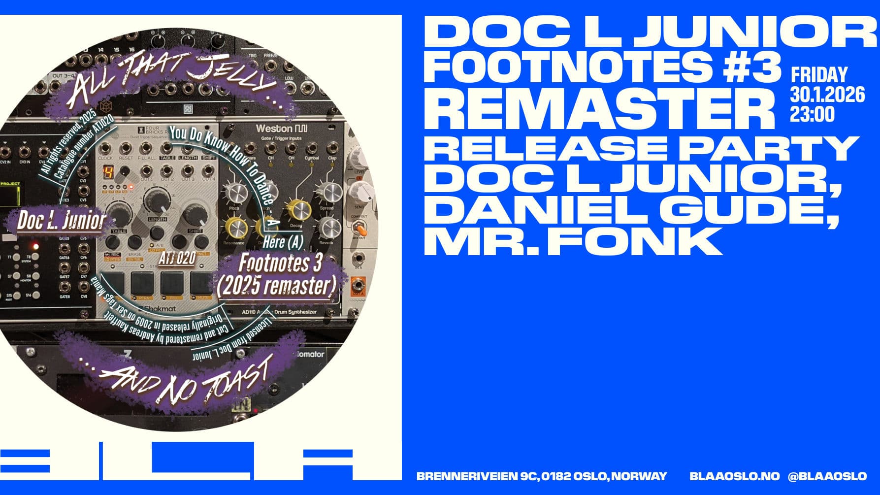 Denne kvelden feirer vi en re-utgivelse av Doc L. Junior sin 12” “Footnotes #3 ”. Denne skiva kan beskrives som en tapt kronjuvel i norsk House-musikk, med en historie som strekker seg over flere tiår.
