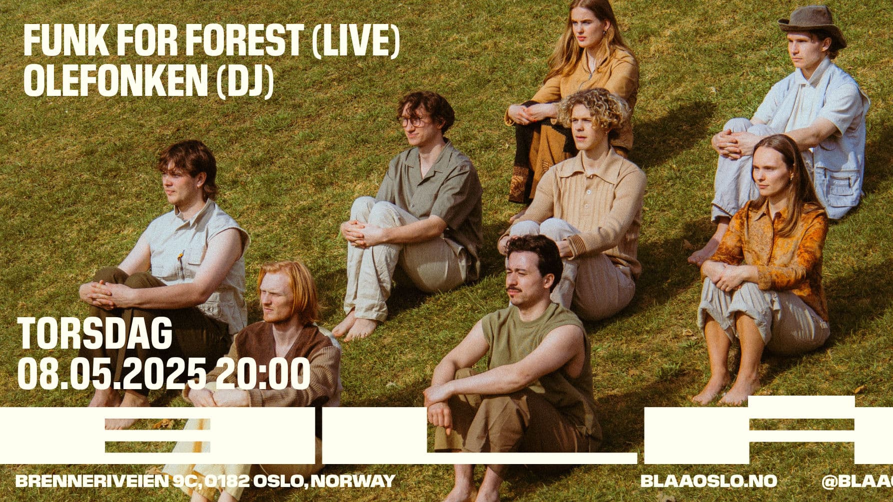 Født av en funk-arv som overgår deres samlede år, bringer de denne arven direkte til dansegulvet. Den flytende besetningen, som kan vokse til ti personer, kommer fra en lang rekke norske live-akter som smelter sammen funk, soul, disco, med både mer obskure sjangre og gulvfyllende dansegulv-bangers. Fra legendariske Frank Znort til nyskapende Flammer Dance Band, føyer Funk for Forest seg inn i en imponerende tradisjon av live dance-band i Oslo