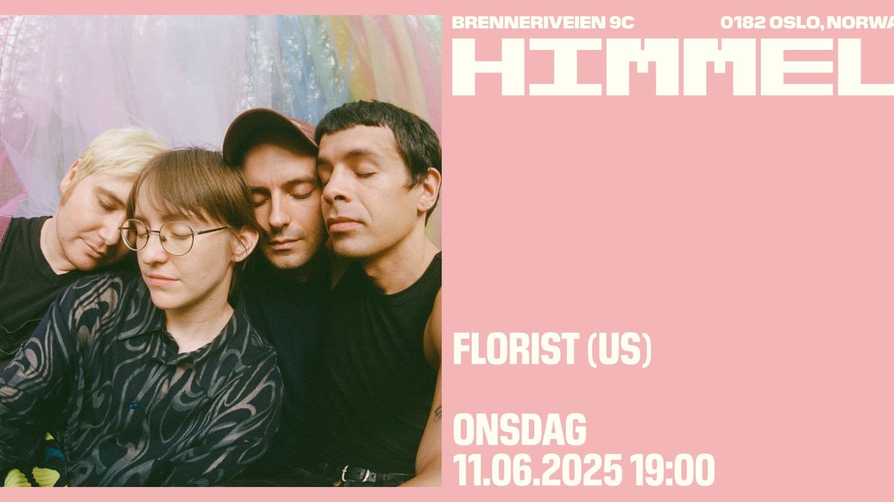 Florist er et minimalistisk folk-band fra New York, ledet av låtskriver Emily Sprague sammen med Jonnie Baker, Felix Walworth og Rick Spataro. Etter nesten 15 år med samarbeid har de utviklet en musikalsk kjemi preget av nærhet og personlig forståelse. Der 2019s Emily Alone dvelte ved ensomhet, og 2022s selvtitulerte Florist utforsket vennskap og naturens lyder, feirer deres nye musikk menneskelig forbindelse, både på et stort og intimt plan. Singelen This Was A Gift kombinerer Spragues refleksjoner med Walworths sarte, skjeve perkusjon og Bakers flytende gitarlinjer. Singelen er tatt fra albumet Jellywish som slippes 04. April og vil bli å høre live på Himmel denne sommerkvelden.