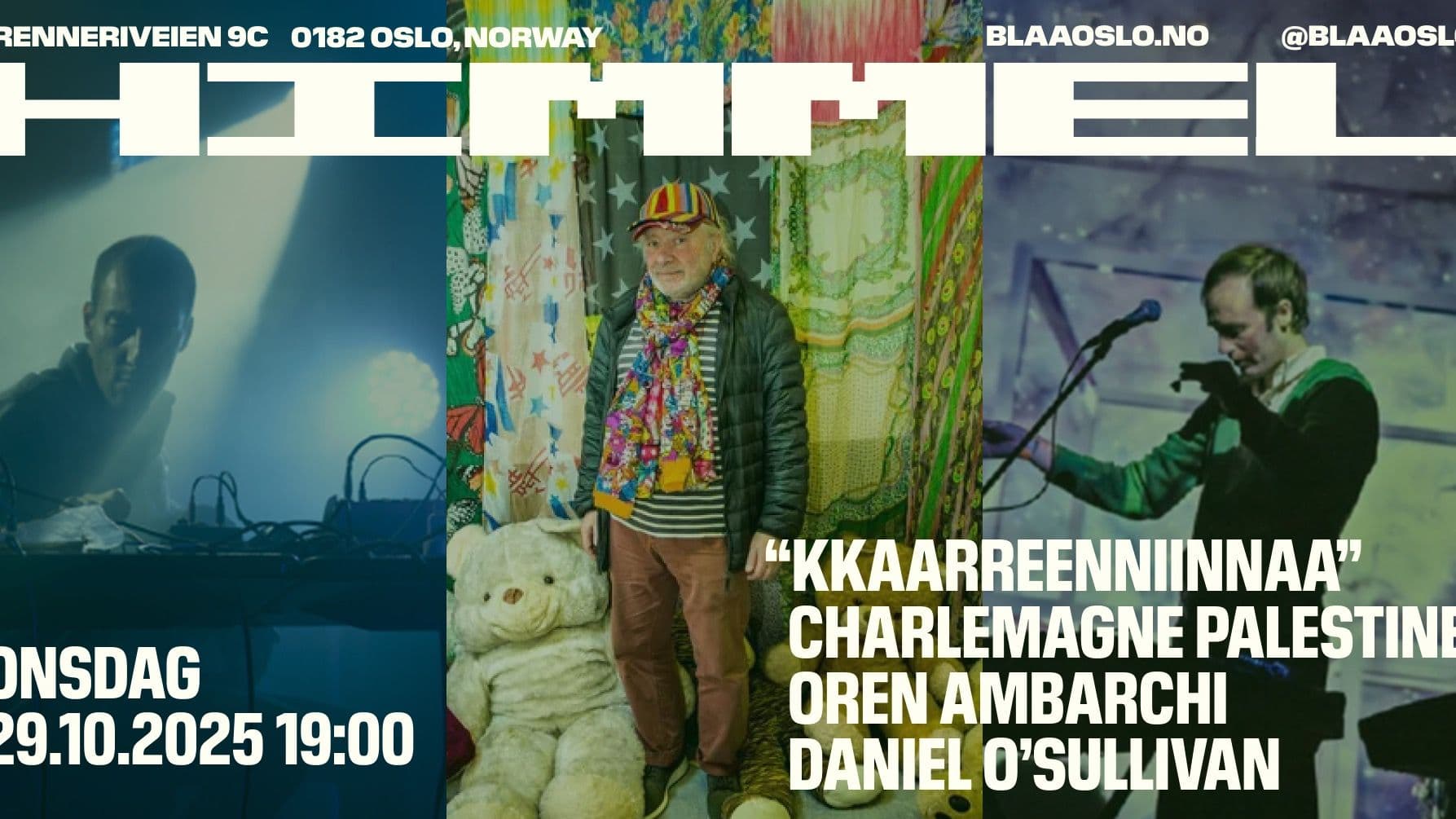 Charlemagne Palestine En sentral skikkelse på den avantgardistiske scenen siden 1960-tallet, og nevnes ofte sammen med navn som Terry Riley og LaMonte Young som en av de store amerikanske minimalistene. Med både radikale og humoristiske tilnærminger utforsker han ekstremt lange musikalske sekvenser og overtoner, ofte med instrumenter som flygel, orgel og kirkeklokker. Hans ritualistiske bruk av instrumenter står i kontrast til hans flamboyante scenetilstedeværelse, og skaper en unikt fengslende opplevelse.
