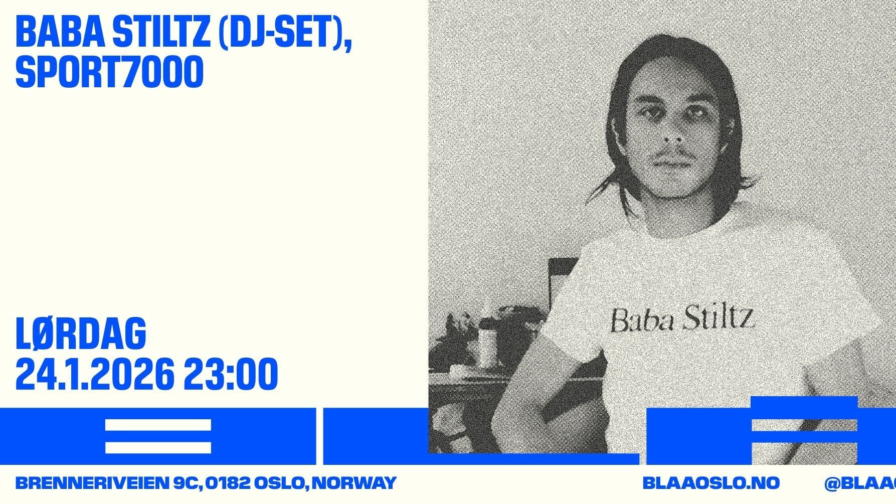 Baba Stiltz (DJ-set) & Sport7000 Lørdag 24. Januar | 23.00 | Id: 20 house, techno, breakbeat, eksperimentell