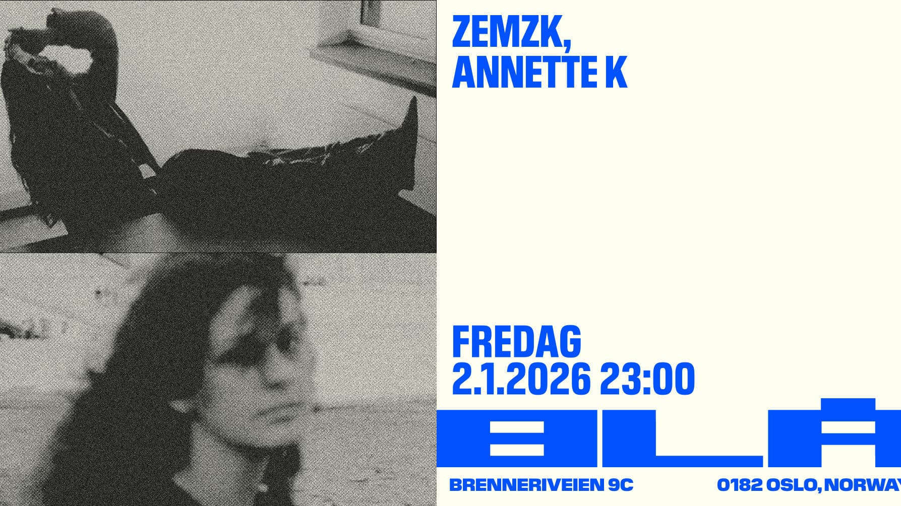 Annette K & zemzk Fredag 2. Januar 2026 | 23:00 | Id: 20 | 180.- techno / dub / breakbeat