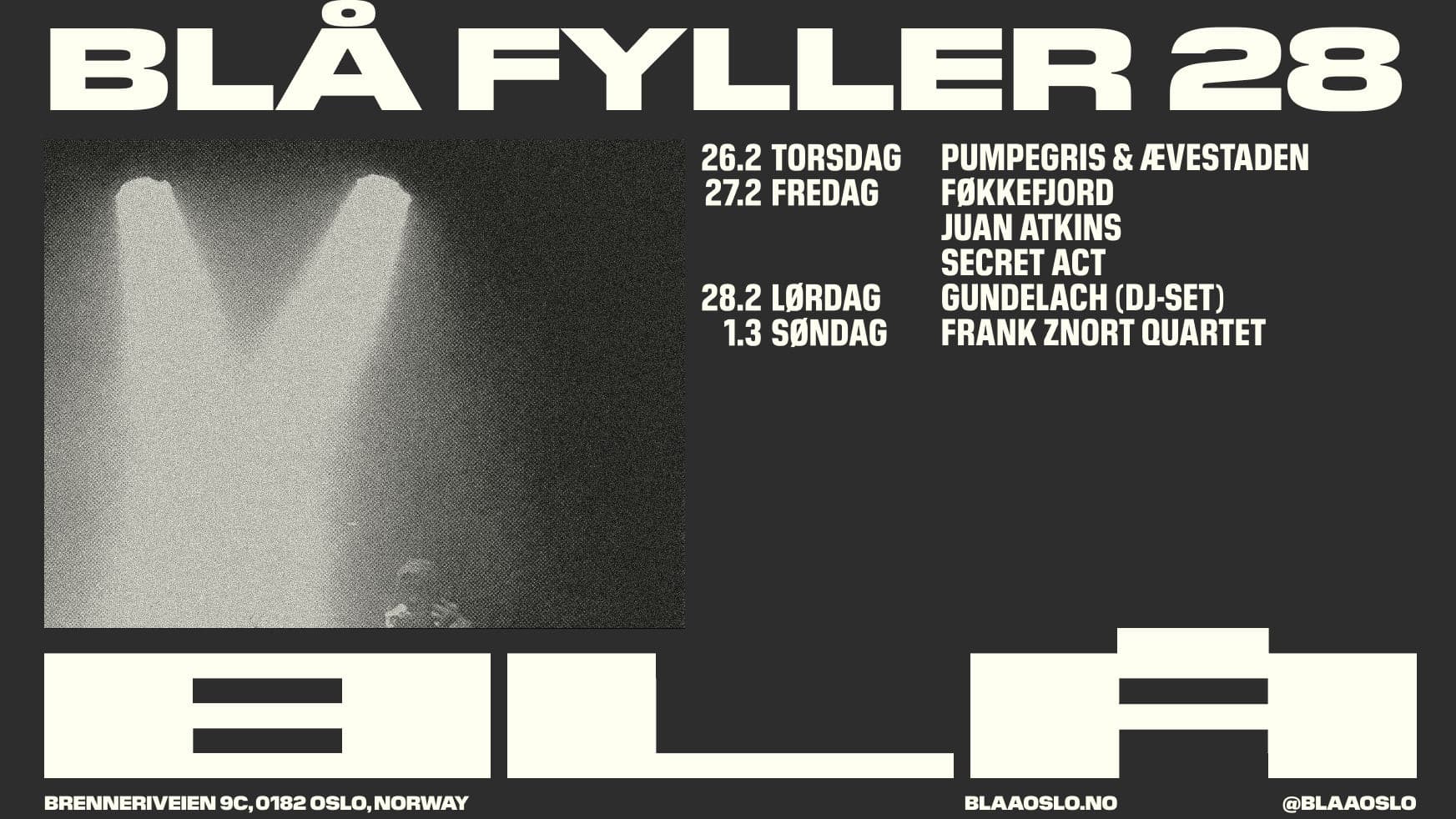 Fredag 27.2: Føkkefjord (live) & hemmelig act tba på Himmel & Juan Atkins på BLÅ