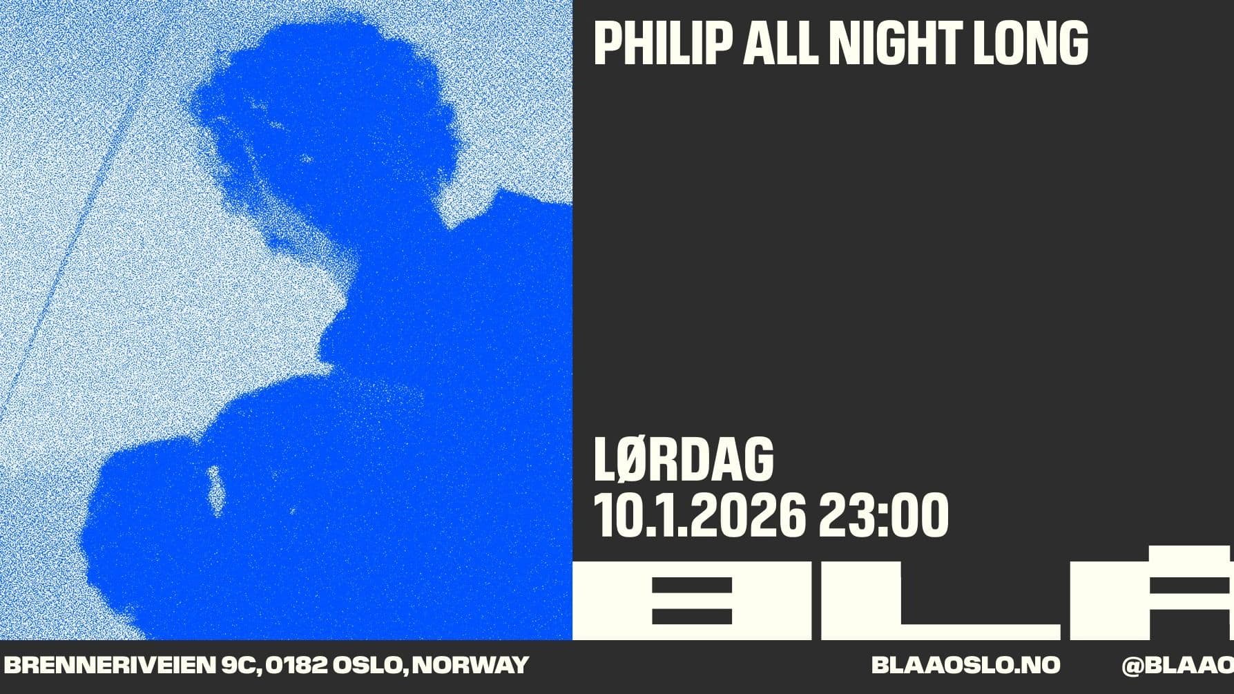 Philip - All Night Long Lørdag 10. Januar | 23:00 | Id: 20 | cc: 150,- | house, techno, dub, breakbeat