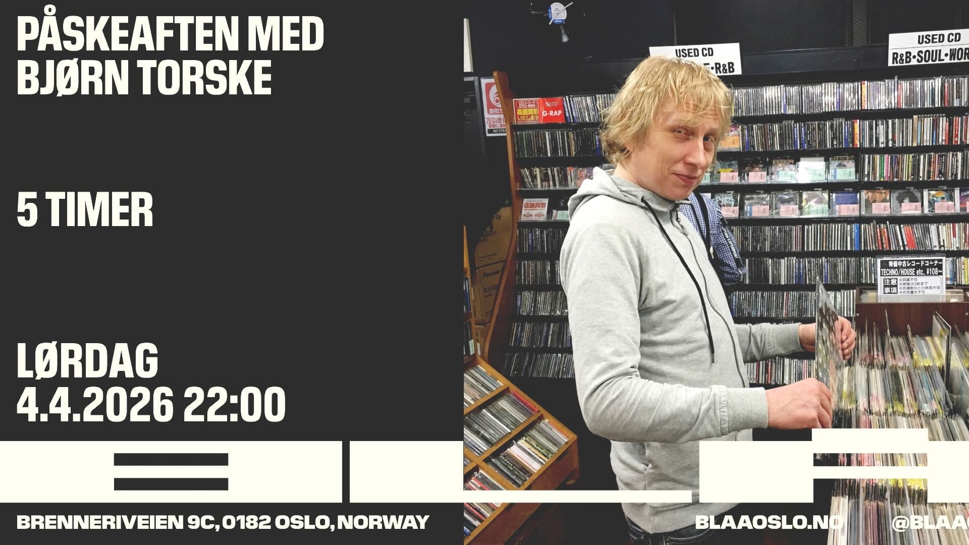 Legenden Bjørn Torske er tilbake på Blå, og feirer påskeaften med oss her i Brenneriveien. 5 timer med et deilig utvalg house, dub og balearic. Dørene åpner kl 22.