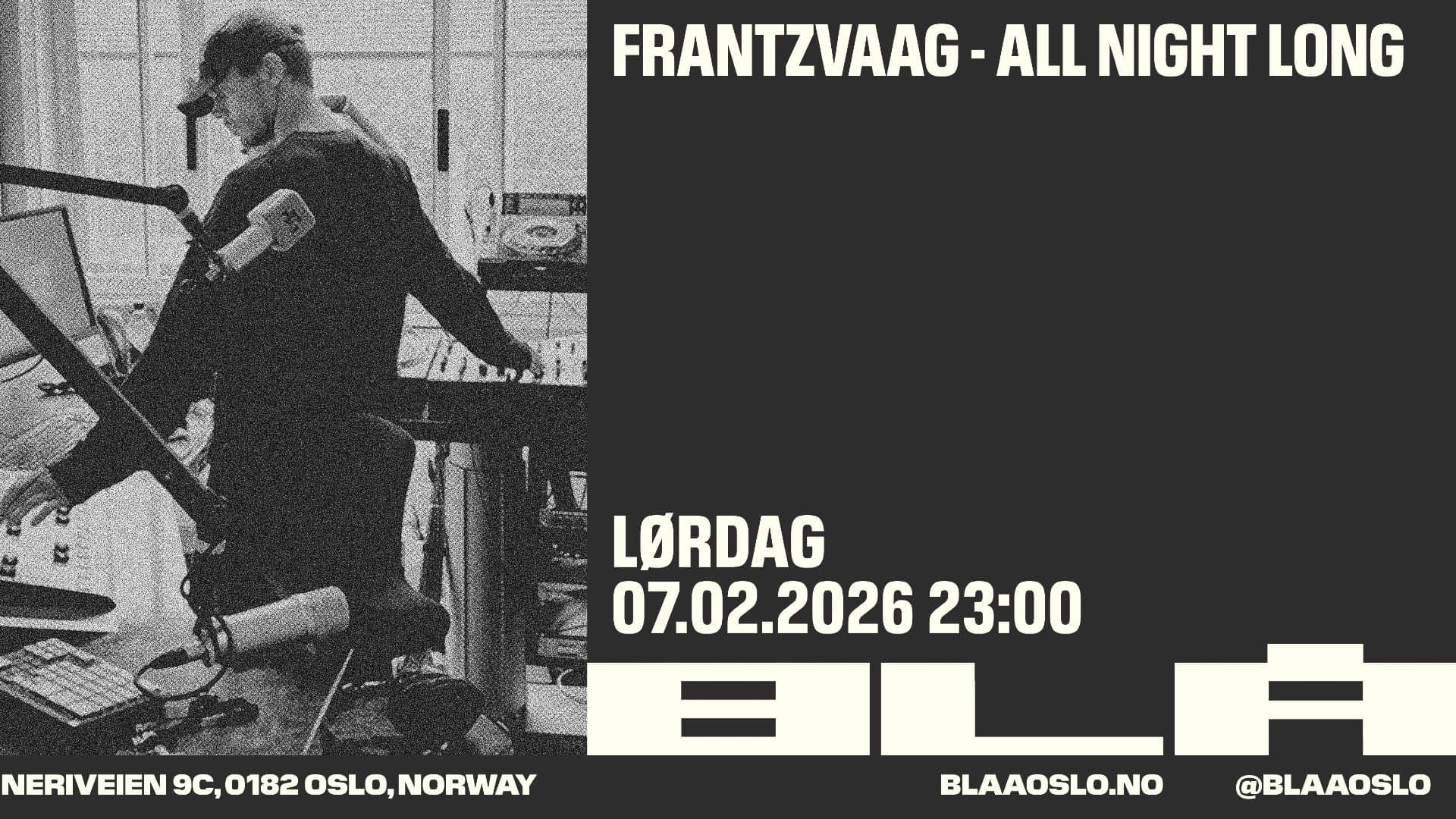 Frantzvaag Lørdag 7. februar 2026 | 23:00 | Id: 20 | 150,- techno / house / breakbeat