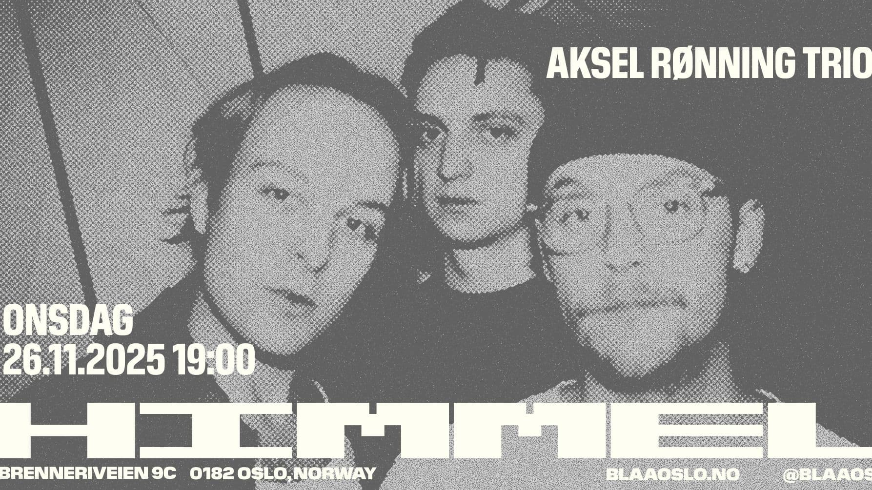 Siden de startet i 2019 har Aksel Rønning Trio gitt ut tre fullengdere, noen enkeltstående singler og flere musikkvideoer. Bandet har turnert landet rundt og gjort konserter på scener som Dokkhuset, Trekanten og Kvarteret i Bergen. På denne turnéen skal de for første gang spille konserter i utlandet, i Paris, Rotterdam, Berlin og København. Himmel er et selvsagt stopp på denne turnéen for et Aksel Rønning Trio i toppform.