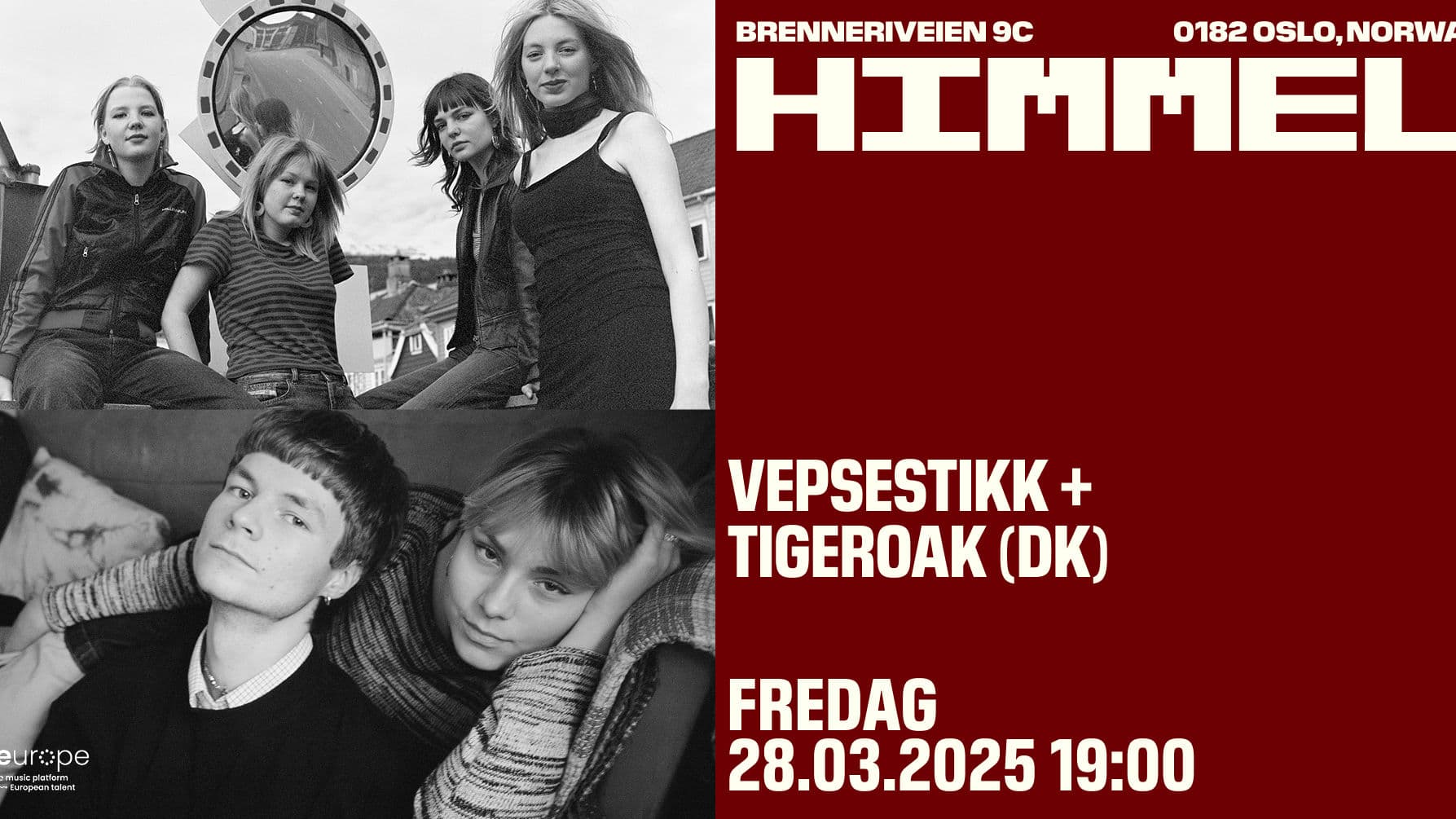 Tigeroak: Tigeroak bygger en bro mellom lett tilgjengelig myk soul og eksperimentell jazz. Bak de komplekse rytmene, intrikate melodiene og elektroniske effektene står produsent og lydkunstner Laurits Steen Møberg og vokalist Anna Prinds. Duoen ga ut debutalbumet Living and Living i 2023 og fulgte opp med EP-en Stay Close i april 2024, utgitt via 100blaa og April Records. Den nye EP-en er en collage av hiphop-grooves fra Londons undergrunn, 2000-tallets neo-soul og elektroniske, futuristiske landskap, kombinert med kjølig nordisk eleganse, akustisk jazz og poetisk lyrikk. Tigeroak vant nylig prisen for «Årets single» under DMA Jazz og mottok seks av seks stjerner for sin konsert på SPOT Festivalen 2024, samt fem stjerner for sin Roskilde-opptreden samme år. Debutalbumet deres ble spilt inn i legendariske Abbey Road Studios i London, og duoen har vært å finne på scener i byer som Beijing, Paris, Berlin, New York og også nylig i DR koncerthus i København.