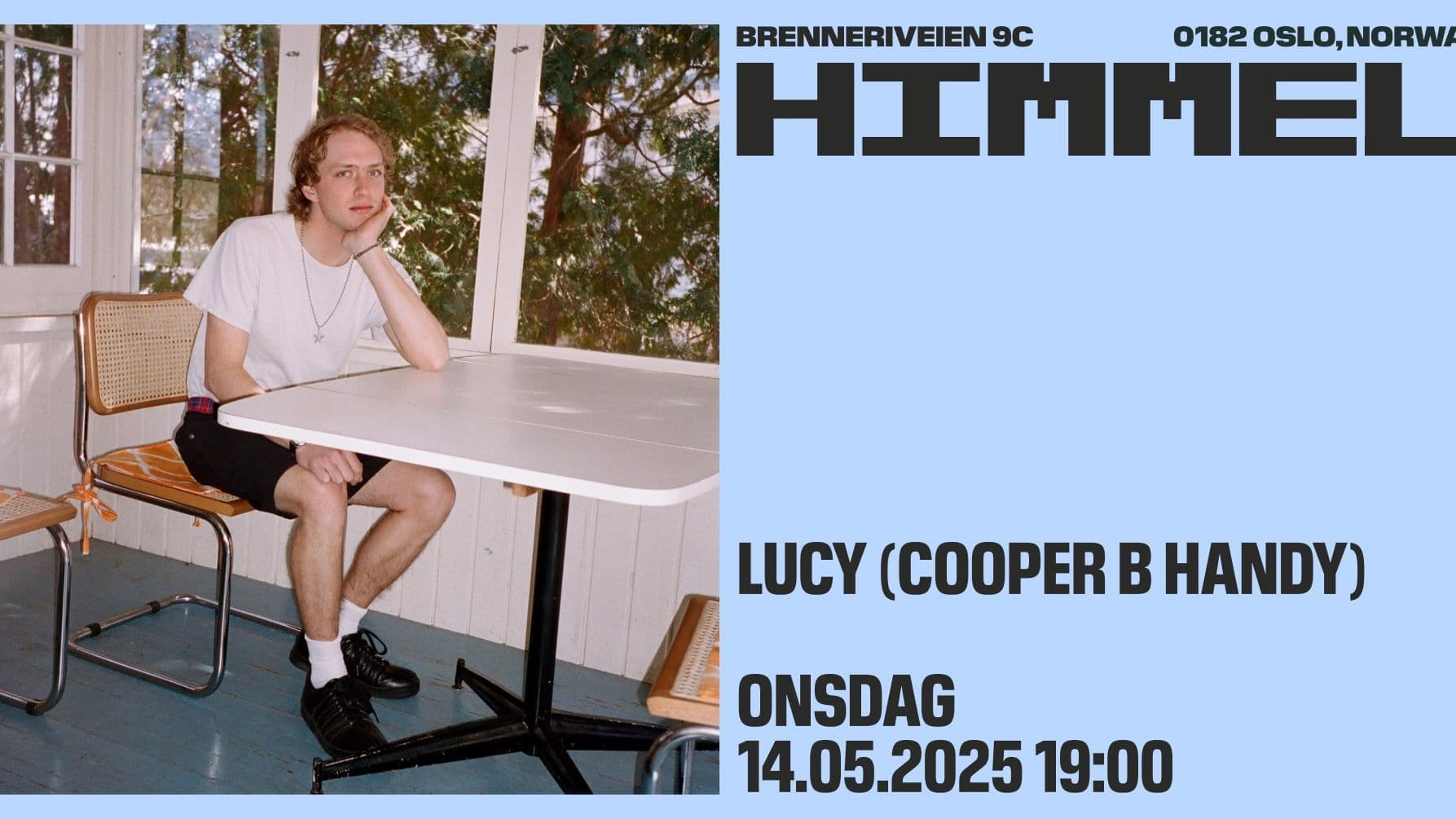 LUCY er musikkprosjektet til Cooper B. Handy, en Massachusetts-basert artist kjent for sin rå og spontane tilnærming til pop og eksperimentell musikk. Med røtter i DIY-scenen kombinerer LUCY lo-fi pop, elektroniske teksturer og snakkesyngende vokal til et lydbilde som både er lekent og personlig. Prosjektet startet anonymt på Facebook, en har har siden vokst til å bli en salgs kultfigur gjennom en omfattende katalog av egenproduserte utgivelser utgitt på Bandcamp. Musikken hans preges av forvrengte instrumenter, uventede vendinger og en ufiltrert energi som føles både umiddelbar og dyptfølt