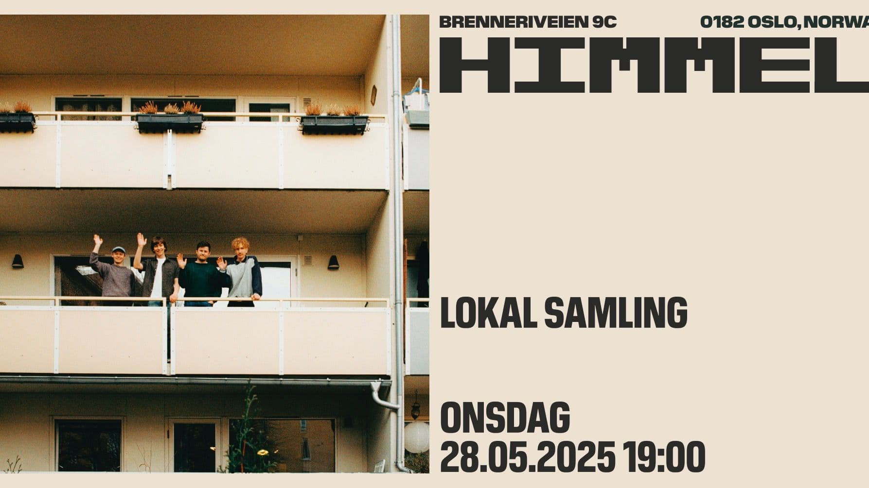 Lokal Samling inviterer til releasekonsert på Himmel! Etter flere år med å rusle gatelangs og lytte til fuglekvitter, syklister og byens larm, ser Lokal Samling seg modne nok til å slippe sitt første album «Jeg mener det». Dette er de veldig begeistret for. Lokal Samling plasserer seg selv innenfor sjangeren de selv har døpt olabilrock, muligens best beskrevet som et sted mellom skranglerocken og den naivistiske popen. De tar for seg store, eksistensielle temaer, gjemt bak mannen-i-gata-tekster, men også små og tilsynelatende uviktige problemer, blåst ut av proporsjoner.
