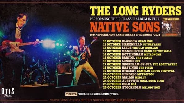 Alt-country-pionerene og Paisley Underground-legendene The Long Ryders kommer tilbake til Blå! Som grunnleggere av alt-country er de en viktig link mellom Gram Parsons’ Flying Burrito Bros og Wilco/The Jayhawks. Bandet, som oppløste i 1987, ble gjenforent på Glastonbury i 2004 og slapp albumet «Psychedelic Country Soul» i 2019, deres første på tre tiår. The Long Ryders kombinerte punkenergi med harmonier fra The Byrds og Buffalo Springfield. «Native Sons» (1984) toppet alternative/college radio i USA og nådde andreplass på britiske indielister. «State Of Our Union» og singelen «Looking For Lewis & Clark» gjorde dem populære på MTV før bandet ble oppløst i 1987. The Long Ryders er kjent som et forrykende liveband, og vi ser frem til å oppleve dem på Blå 25. oktober!